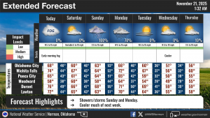The graphics that I post are from the NWS. After looking at them and hopefully you reading the info, the graphics will change some during the day and be posted to the NWS/NORMAN webpage here at this link- www.weather.gov/oun It’s important to note that unless we have any major weather issues during the day or night, I won’t post those differences. On the Garfield County EM app, you can get directly to the NWS/NORMAN site by clicking on Local Weather in the upper left corner of the app.
